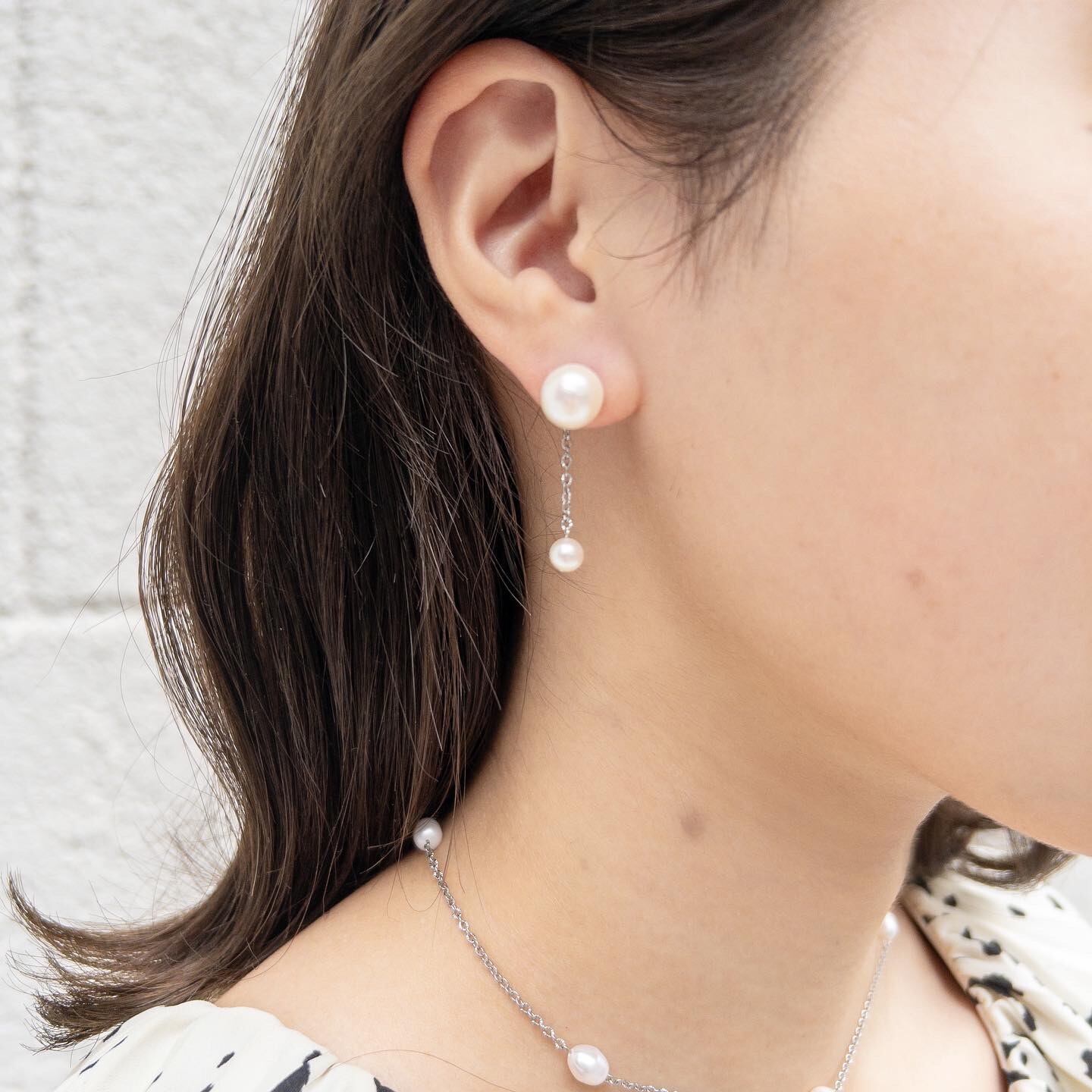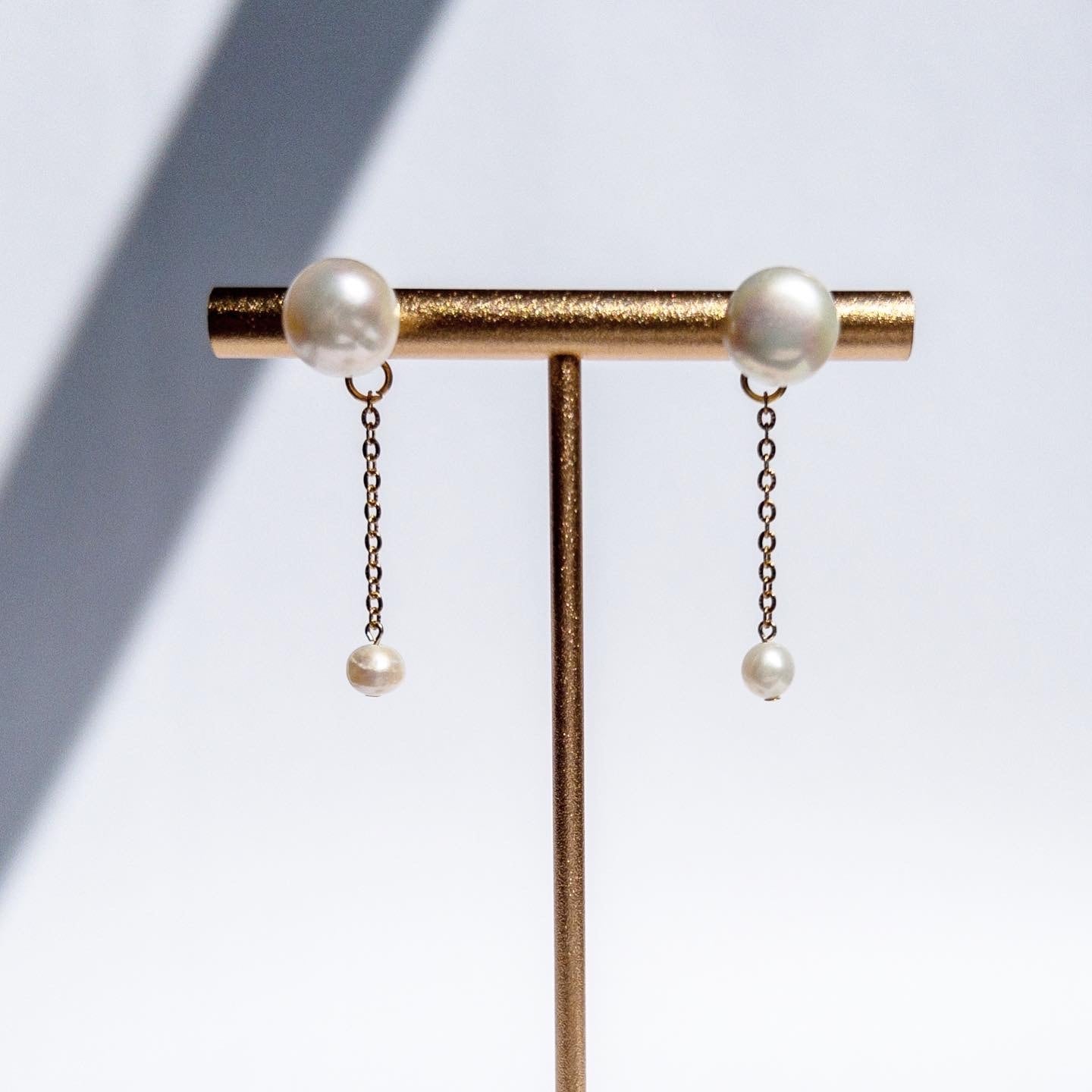 約2cmの短めチェーンがちらっと揺れるシンプルなパールピアスです。